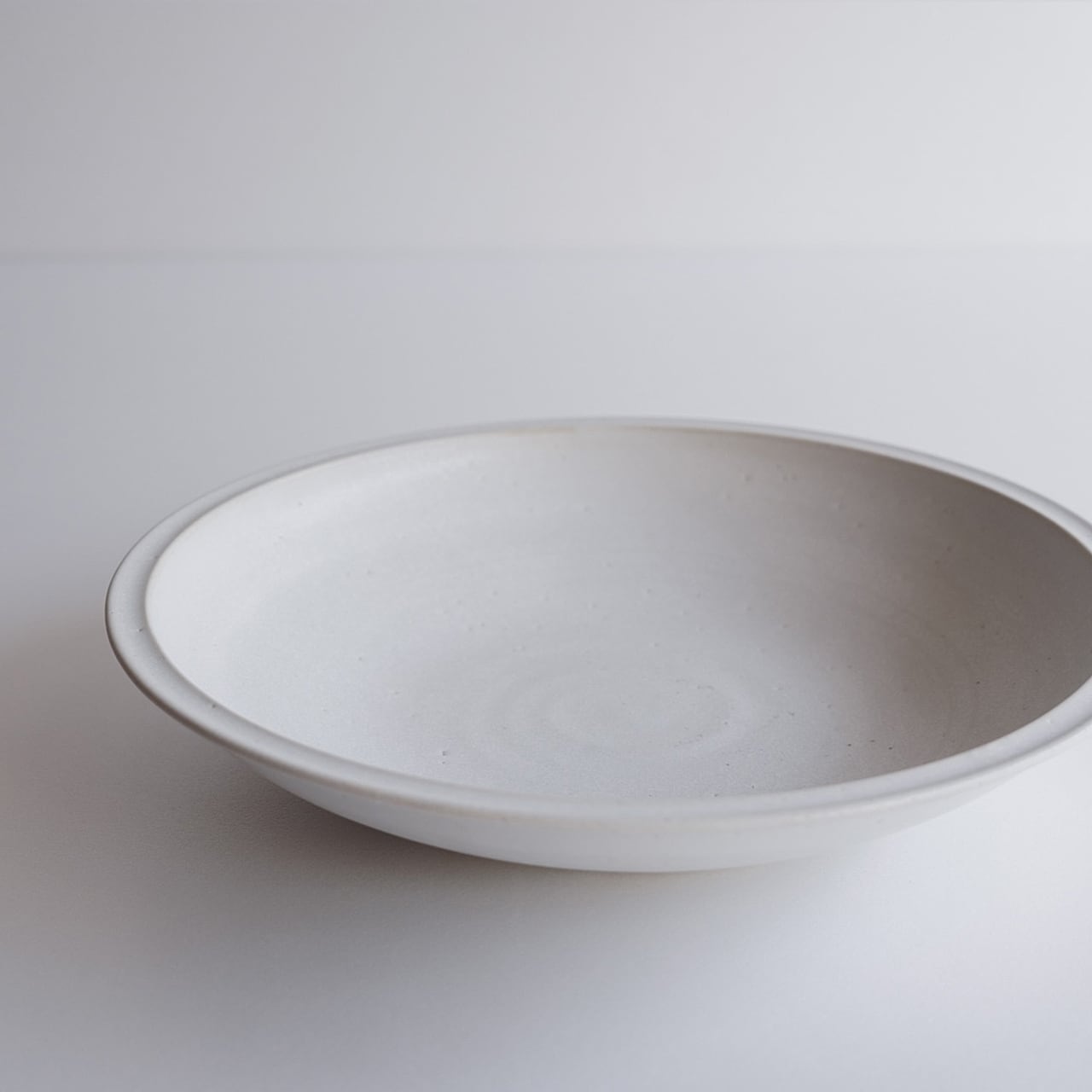 白の中に結晶が見え隠れする表情、日常使いを意識して料理を主役とした使い勝手のいい色味、質感を目指して作りました。